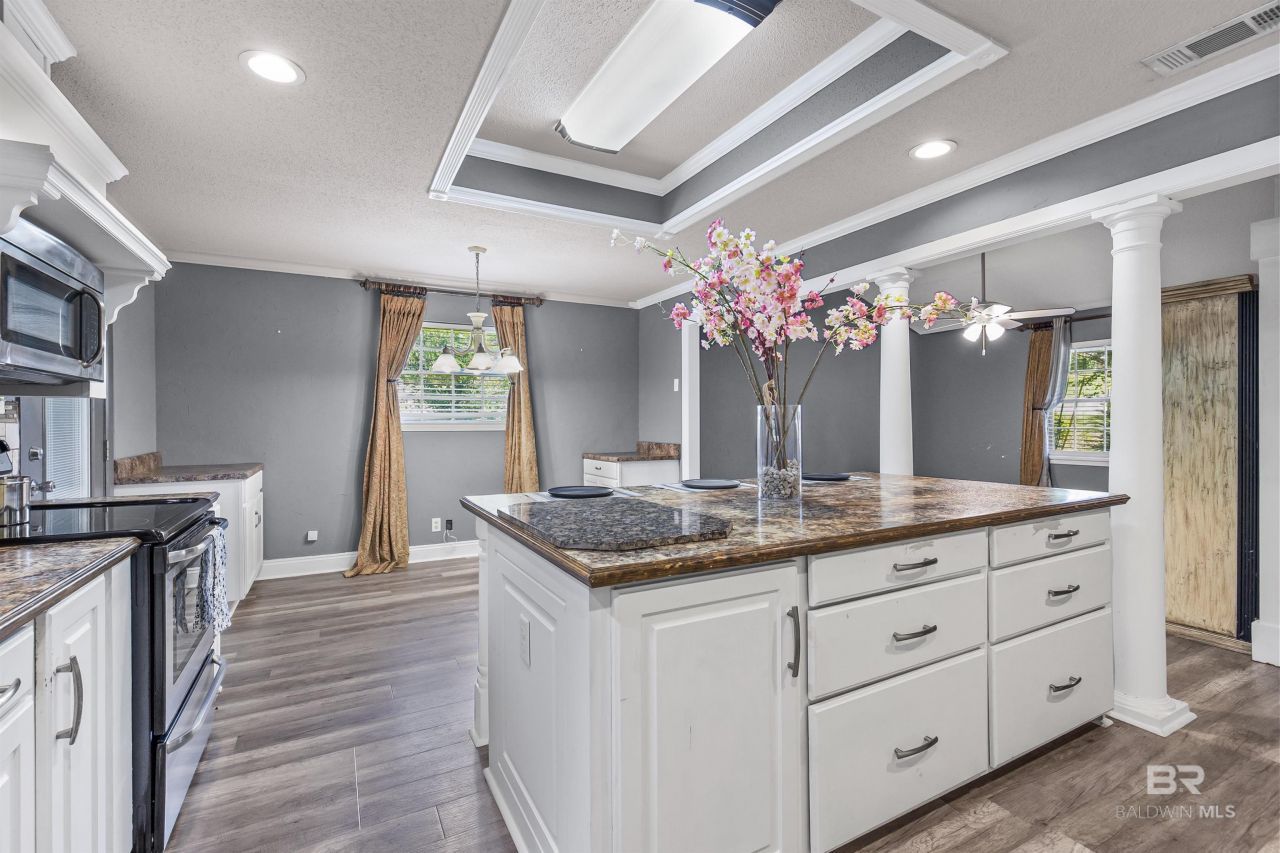 **Back on the market due to no fault of the Seller** MOTIVATED SELLER - HOME SOLD AS IS. You must see this move-in ready 4-bedroom, 3-bathroom home in Chickasaw! It is just minutes away from shopping centers, schools, the interstate, and the Medical Center in Saraland. This home has been well-maintained and is ready for its next chapter. The oversized kitchen, featuring a huge island with plenty of room for barstools, offers lots of cabinet storage and views of the dining and living room, providing a wonderful open concept floor plan. Enjoy cookouts on the back covered deck overlooking the beautiful, fenced-in backyard. There is ample storage throughout the house, including additional space off the garage and multiple large closets. The oversized den downstairs, complete with a gas fireplace, provides endless possibilities as a family room, living area, or game room. This home qualifies for the Mobile County Down Payment Assistance Program for up to $50,000 in assistance, making it even more affordable. Please check the Mobile County website or contact them for additional details and program requirements. Come see it today! Buyer to verify all information during due diligence.